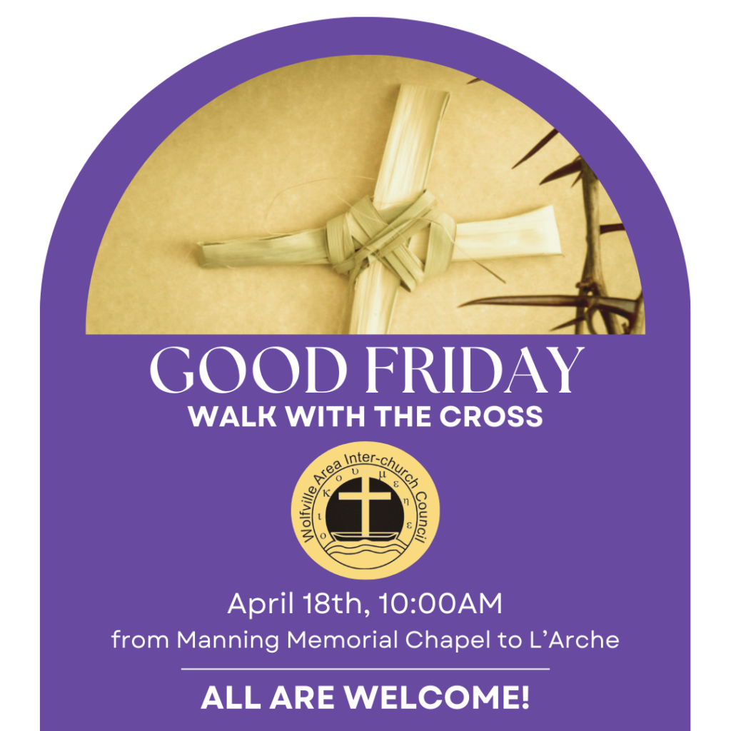 Along the way, several stations of the cross will be followed as representatives of various Wolfville Area InterChurch Council members lead us.