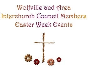 • 1pm- Ecumenical Service follows at Wolfville Baptist Church. All are welcome to join in the walk and Ecumenical Worship service. The S&B will provide hot cross buns and refreshments.
