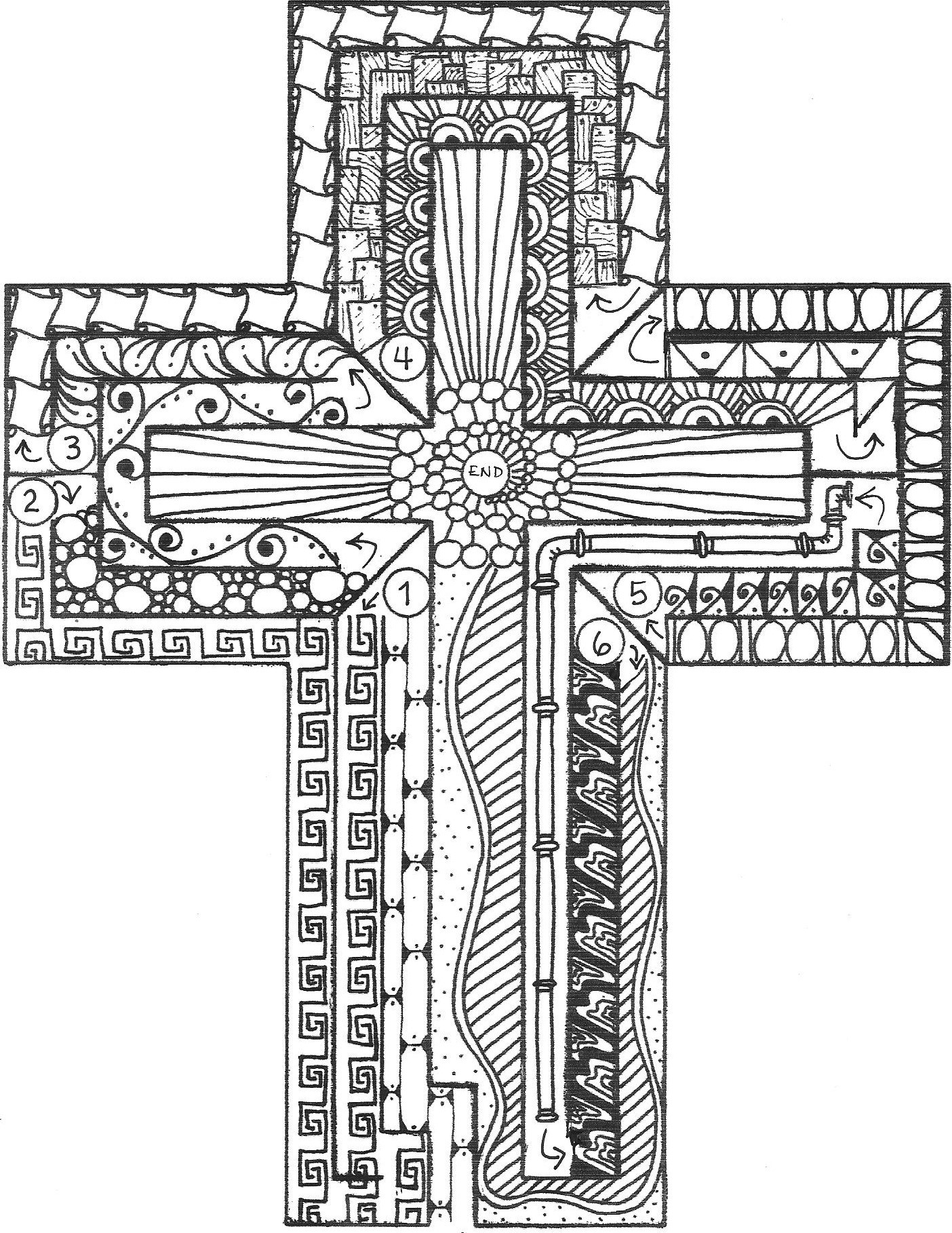 For those staying at home: Pick a quiet space perhaps with a view. To use the labyrinth, do the opening prayer and song; then put your finger at the start and move it along the path until you reach the number 1. Do the reading and prayer for that stop before moving to the next. Or you can colour the parts of the path in between prayer stops.